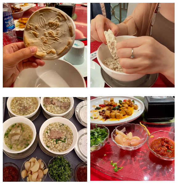 同盛祥飯莊以經(jīng)營獨(dú)具民族特色的牛羊肉泡饃而馳名中外。百年老字號(hào)【同盛泡饃】被譽(yù)為“同盛祥天下第一碗”,其牛羊肉泡饃制作技藝被列入國家級(jí)非物質(zhì)文化遺產(chǎn)保護(hù)名錄。“同盛”二字也寓意同心同德,繁榮昌盛。一壺茶一桌友,共坐閑話掰泡饃,這也是西安“慢”的儀式。